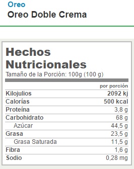 Hasta ahora he contado azúcar cuatro veces. Azúcar con jarabe de fructosa con azúcar y con caramelo. Lo que no encuentro, aparte del concentrado de algas, es algún otro ingrediente que no sea azúcar. Veamos la información nutricional: ¡en 19 gramos de producto hay 18 gramos de azúcar! Vamos, que te están vendiendo dos sobrecitos de azúcar y llamándolo flan.
